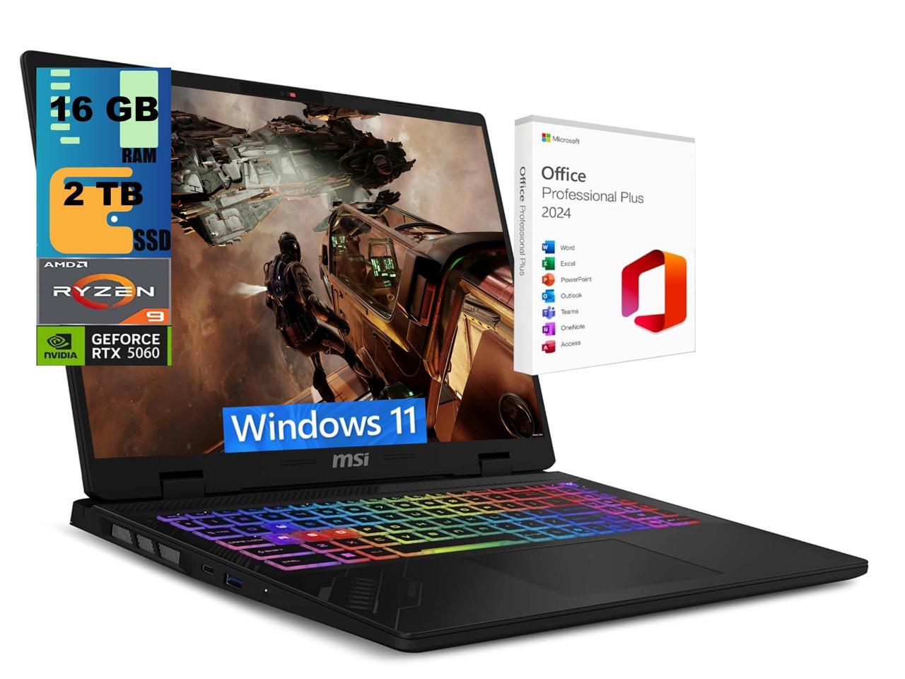 MSI Crosshair A16 Gaming Laptop, 16" QHD+ 240Hz, AMD Ryzen 9 8940HX 16-Core Processor, NVIDIA GeForce RTX 5060 8 GB GDDR7, 16GB DDR5 2TB PCIe SSD, Wi-Fi 6E, Windows 11 ,Office 2024 License