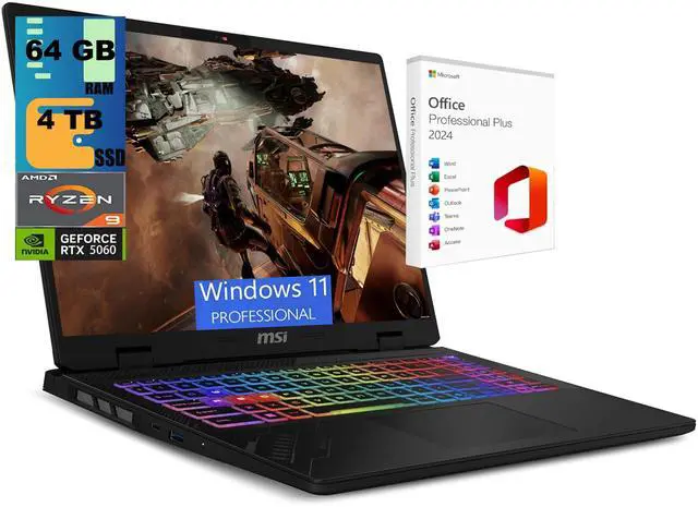 MSI Crosshair A16 Gaming Laptop, 16" QHD+ 240Hz, AMD Ryzen 9 8940HX 16-Core Processor, NVIDIA GeForce RTX 5060 8 GB GDDR7, 64GB DDR5 4TB PCIe SSD, Wi-Fi 6E, Windows 11 Pro ,Office 2024 License