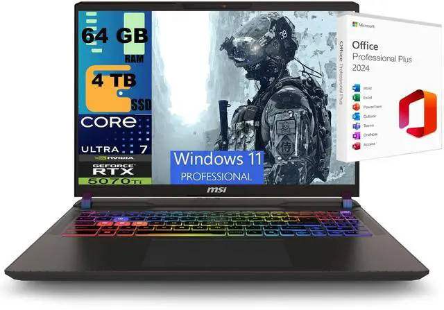MSI Vector 16 Gaming Laptop, 16" WUXGA 144Hz Display, Intel 20-core Ultra 7 255HX Processor, GeForce RTX 5070 Ti 12GB Graphic, 64GB DDR5 4TB PCIe SSD, RGB Backlit, Windows 11 Pro ,Office 2024 License