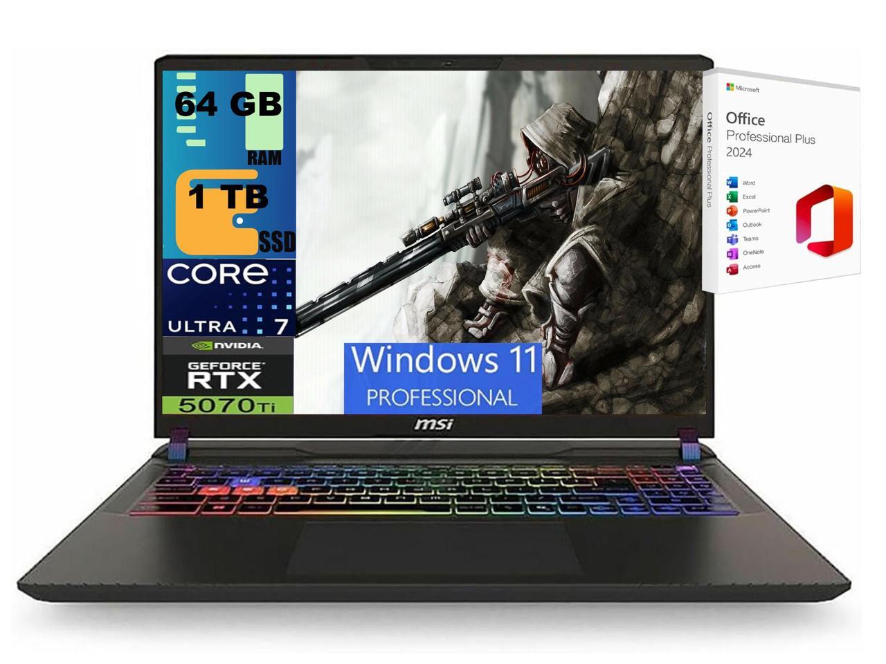 MSI Vector 16 Gaming Laptop, 16" QHD+ 240Hz, Intel 20-core Ultra 7 255HX Processor, NVIDIA GeForce RTX 5070 Ti 12GB Graphic, 64GB DDR5 1TB PCIe SSD, RGB Backlit, Windows 11 Pro ,Office 2024 License