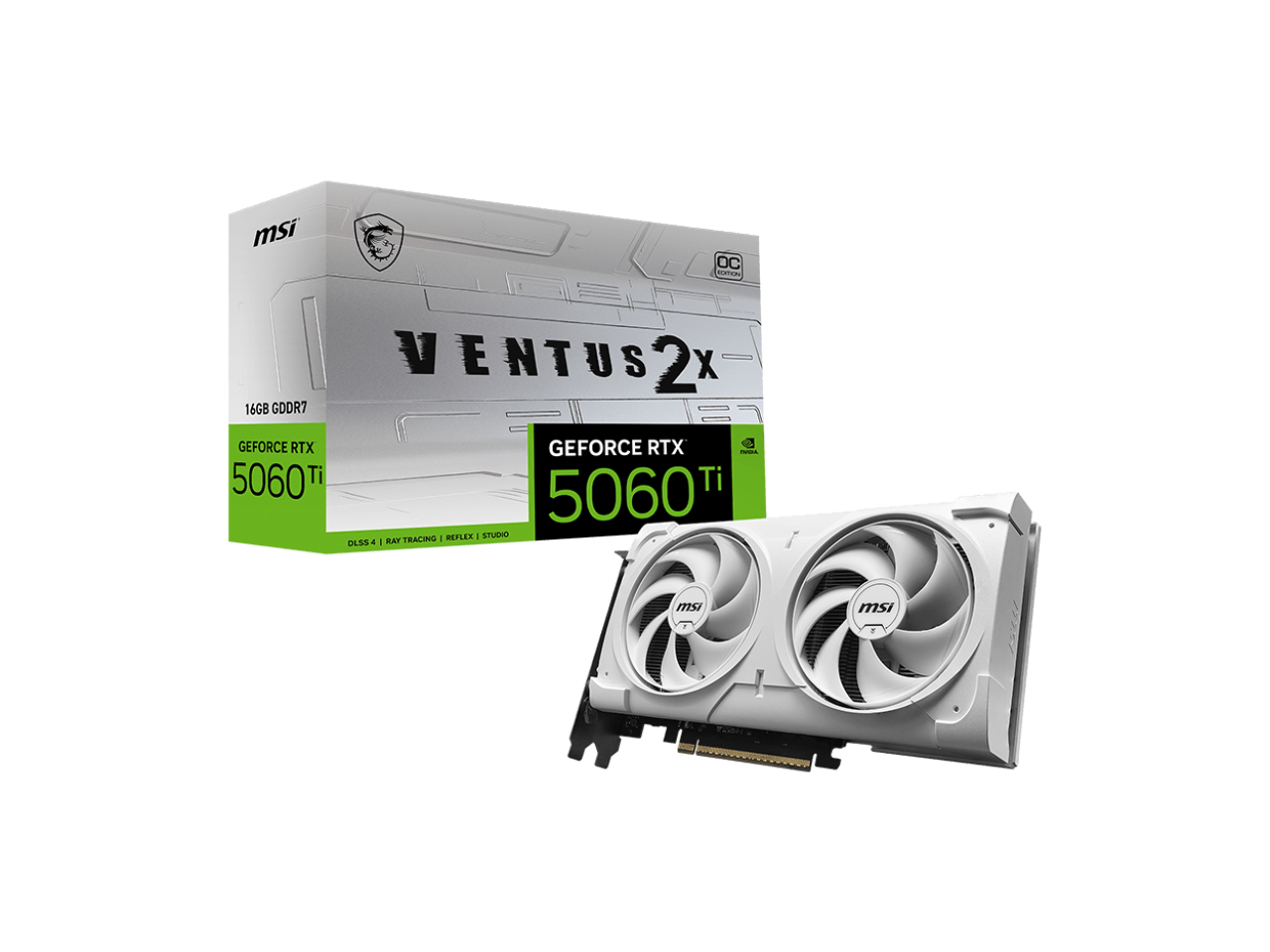 MSI Ventus GeForce RTX 5060 Ti 16GB GDDR7 PCI Express 5.0 x16 (use x8) Graphics Card (RTX 5060 Ti 16G VENTUS 2X OC WHITE PLUS)