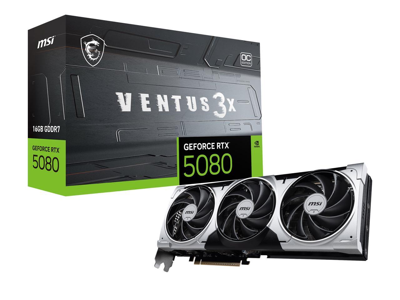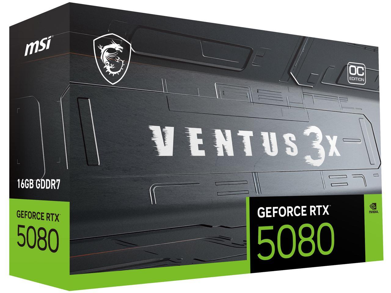 MSI Ventus GeForce RTX 5080 16GB GDDR7 PCI Express 5.0 Graphics Card RTX 5080 16G VENTUS 3X OC PLUS