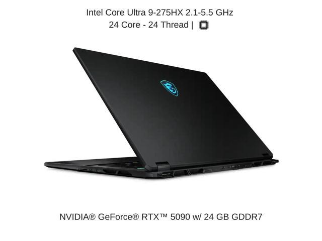 - Intel Core Arrow Lake Ultra 9-275HX 24 Core - 24 Thread Processor, 2.1 GHz (Max Turbo Frequency 5.5 GHz), 36 MB Smart Cache with NVIDIA GeForce RTX 5090 w/ 24 GB GDDR7