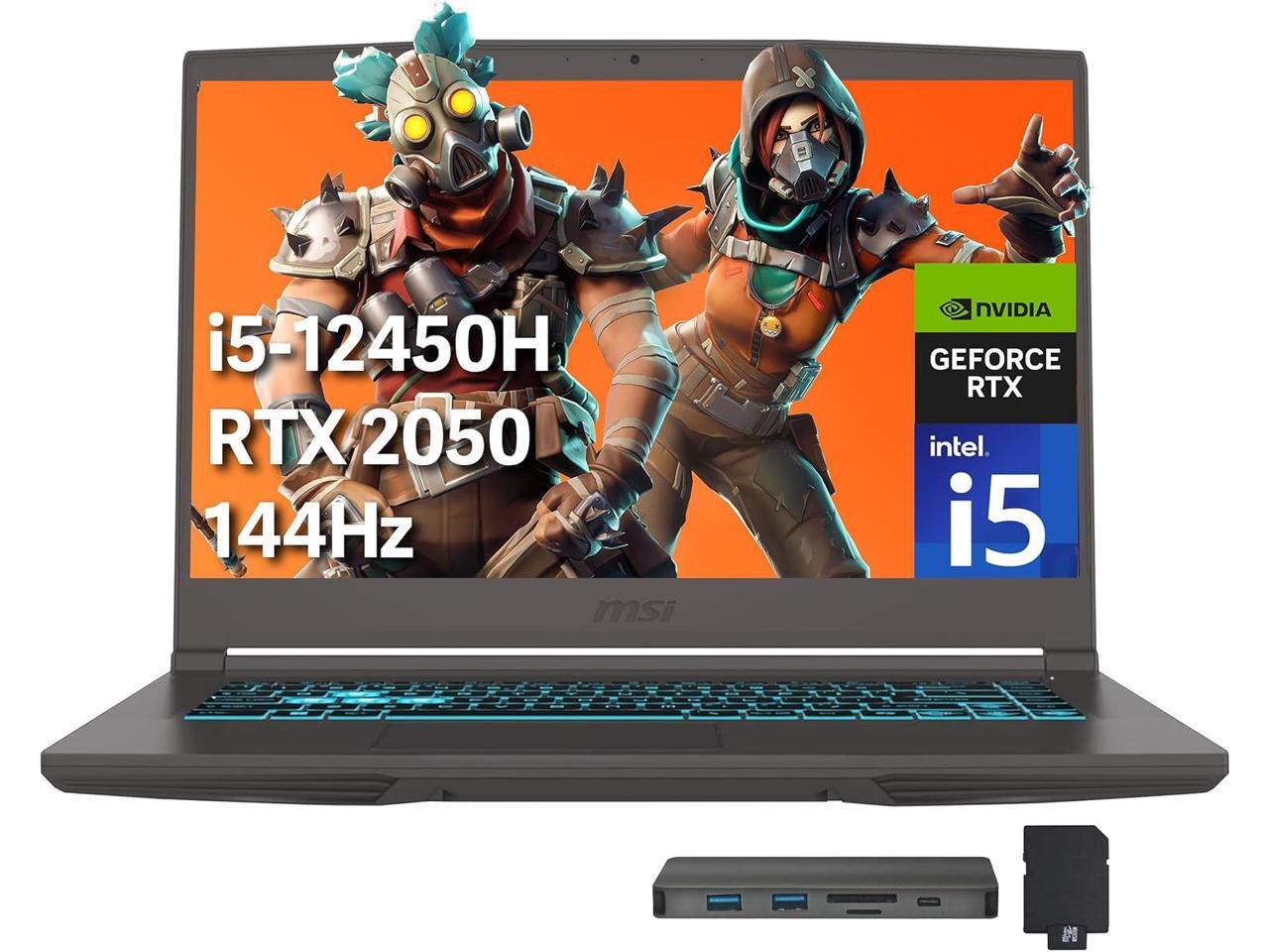 15.6" FHD IPS Display&144Hz Refresh Rate: Intel Core i5-12450H Processor: Designed to balance performance and power consumption, this 8-core processor effortlessly handles demanding tasks, enabling you to conquer the most intense gaming sessions with ease. ^^32GB DDR4 RAM+1TB PCIe SSD: Elevate your projects with a high-speed RAM, ensuring faster data processing, seamless multitasking, and improved responsiveness that keeps you in the flow. ^^Backlit Keyboard&NVIDIA GeForce RTX 2050 Graphics: Enjoy comfortable and accurate typing, even in dim light. ^^Win 11 Home&Dimensions&Wi-Fi 6: 14. 13x 10x 0.85 inches, 4.1 lbs. Ports: 3x USB 3.2 Gen2 Type-A, 1x USB 3.2 Gen2 Type-C, 1x HDMI, 1x Mic-in, 1x Headphone-out, 1x LAN RJ-45, 1x DC-IN, 1x Kensington Lock. 2x 2W Speaker. Bluetooth 5.2. HD Camera.^^Bonus Docking Station Set: 1x 7-in-1 Docking Station with 256GB Storage, 1x 32GB MicroSD Card with Adapter, 1x Type-C Data Cable,