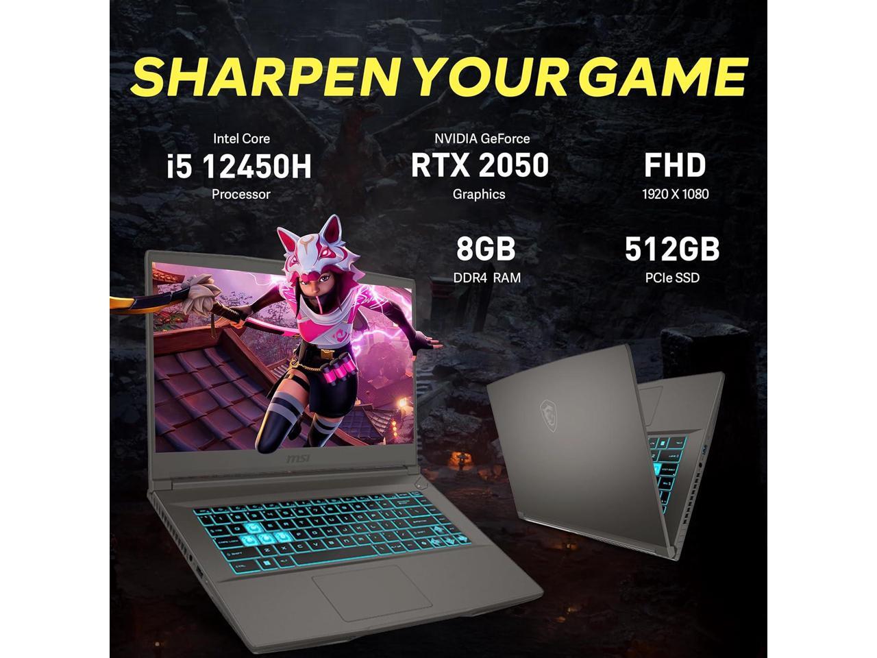 MSI Thin 15 15.6" FHD IPS 144Hz Gaming Laptop, Intel i5-12450H, 8GB RAM, 512GB PCIe SSD, NVIDIA GeForce RTX 2050, Backlit Keyboard, WIFI 6, Black, Win 11 Home, 256GB Docking Station Set