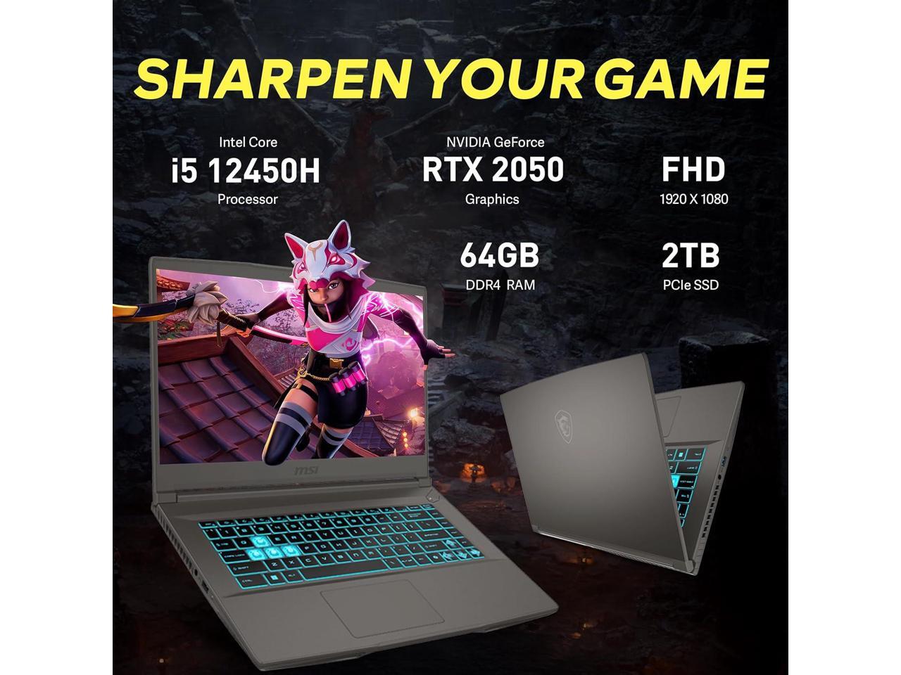 MSI Thin 15 15.6" FHD IPS 144Hz Gaming Laptop, Intel i5-12450H, 64GB RAM, 2TB PCIe SSD, NVIDIA GeForce RTX 2050, Backlit Keyboard, WIFI 6, Black, Win 11 Home, 256GB Docking Station Set