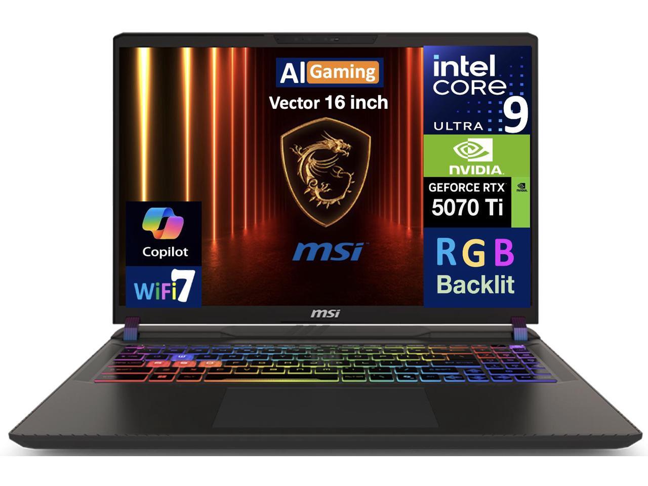MSI Vector AI Gaming Laptop 16.0" 240Hz WQXGA Display (Intel Ultra 9- 275HX, NVIDIA GeForce RTX 5070 Ti 12GB, 64GB DDR5, 2x1TB PCIe SSD (2TB), RGB KB, 2 Thunderbolt 4, WiFi 7, Webcam, Win 11 Pro)