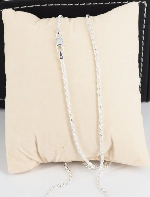 Add timeless elegance to your jewelry collection with this expertly crafted 20" Diamond Cut Rope Chain Necklace, made from genuine 925 sterling silver and stamped 0.925 for authenticity. Designed for the fashionable man or woman, this versatile piece features a 2.8MM width and offers a perfect balance of shine, sophistication, and everyday wearability.