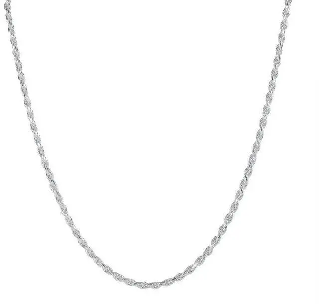 Add timeless elegance to your jewelry collection with this expertly crafted 24" Diamond Cut Rope Chain Necklace, made from genuine 925 sterling silver and stamped 0.925 for authenticity. Designed for the fashionable man or woman, this versatile piece features a 2.8MM width and offers a perfect balance of shine, sophistication, and everyday wearability.
