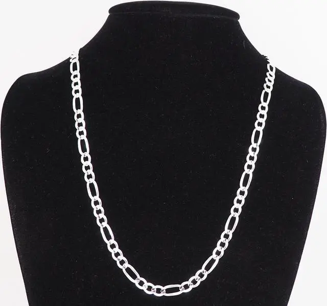 24-inch 925 Sterling Silver Figaro Necklace - Polish Finish, Lightweight, Unisex
