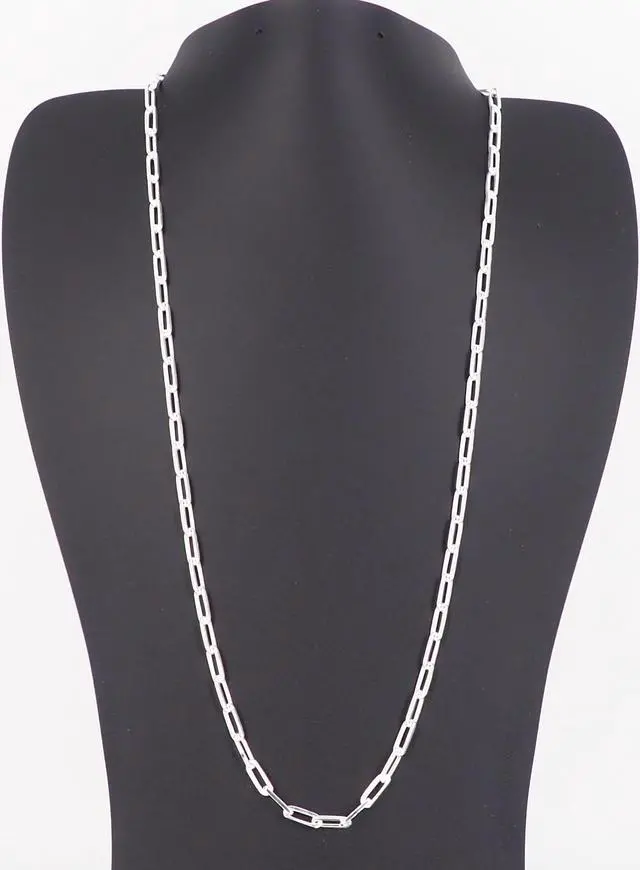 4mm Solid 925 sterling silver paperclip chain necklace for Women / Men