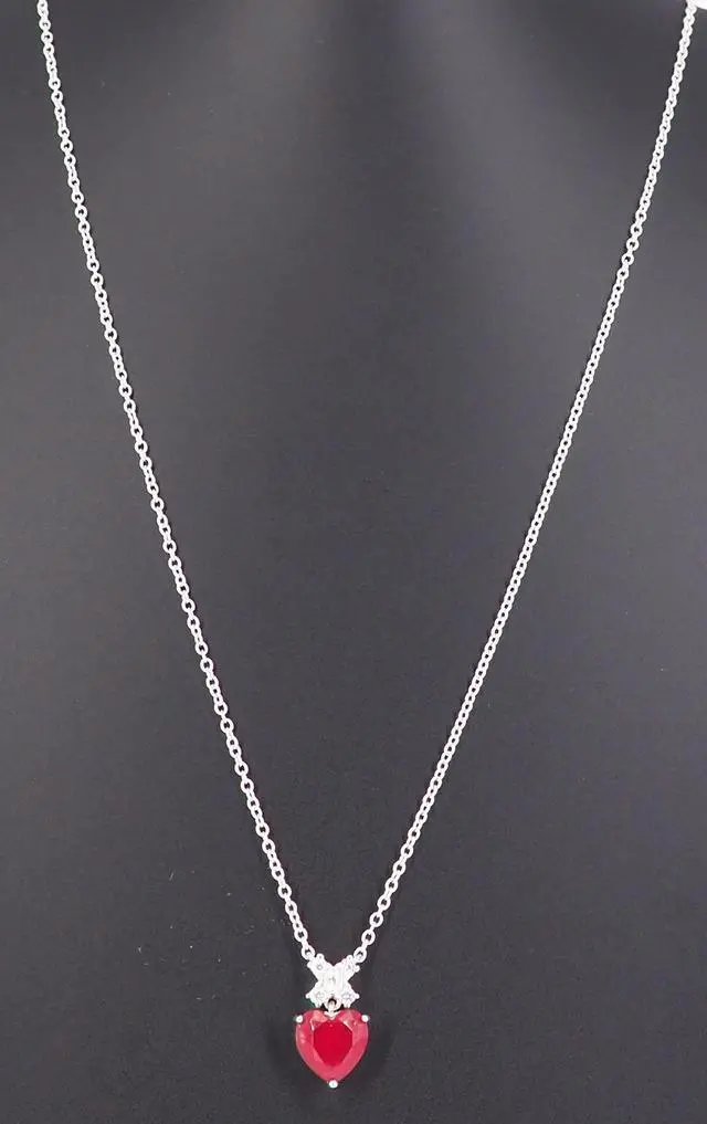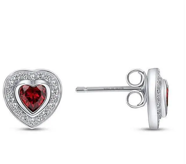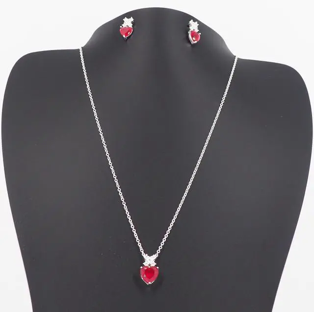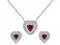 Pendant and Earrings: Beautiful heart-shaped design with a vibrant red Cubic Zirconia center