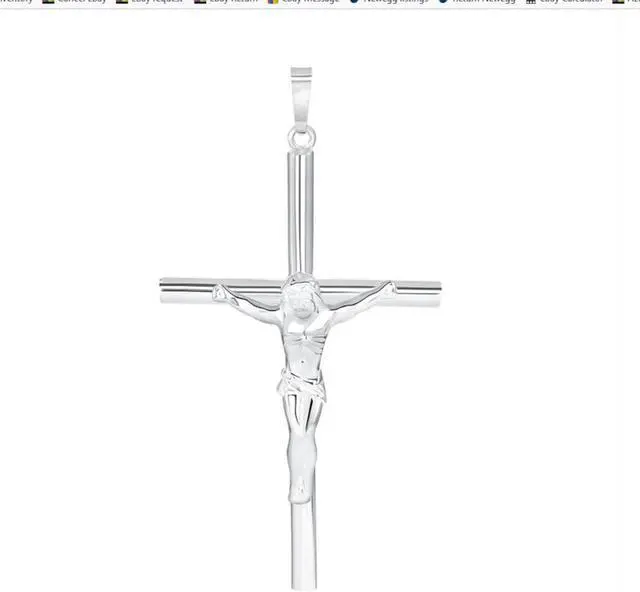 Solid 0.925 Sterling Silver Tube Lord Jesus Christ Crucifix Holy Cross Necklace Charm Pendant, 52 mm tall, Approx Weight 5.5 gram with16" Rolo Diamond Cut Chain, All ages Cross03-Med+BRT040