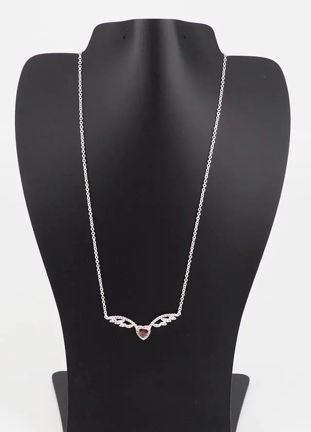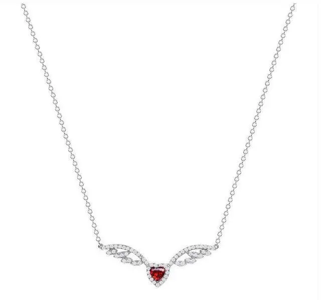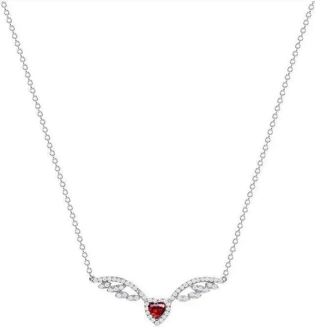 16" + 2", Sterling Silver 925 Flying Heart Red Cubic Zirconia pendant necklace with Rolo chain Rhodium Plated BN3961RED