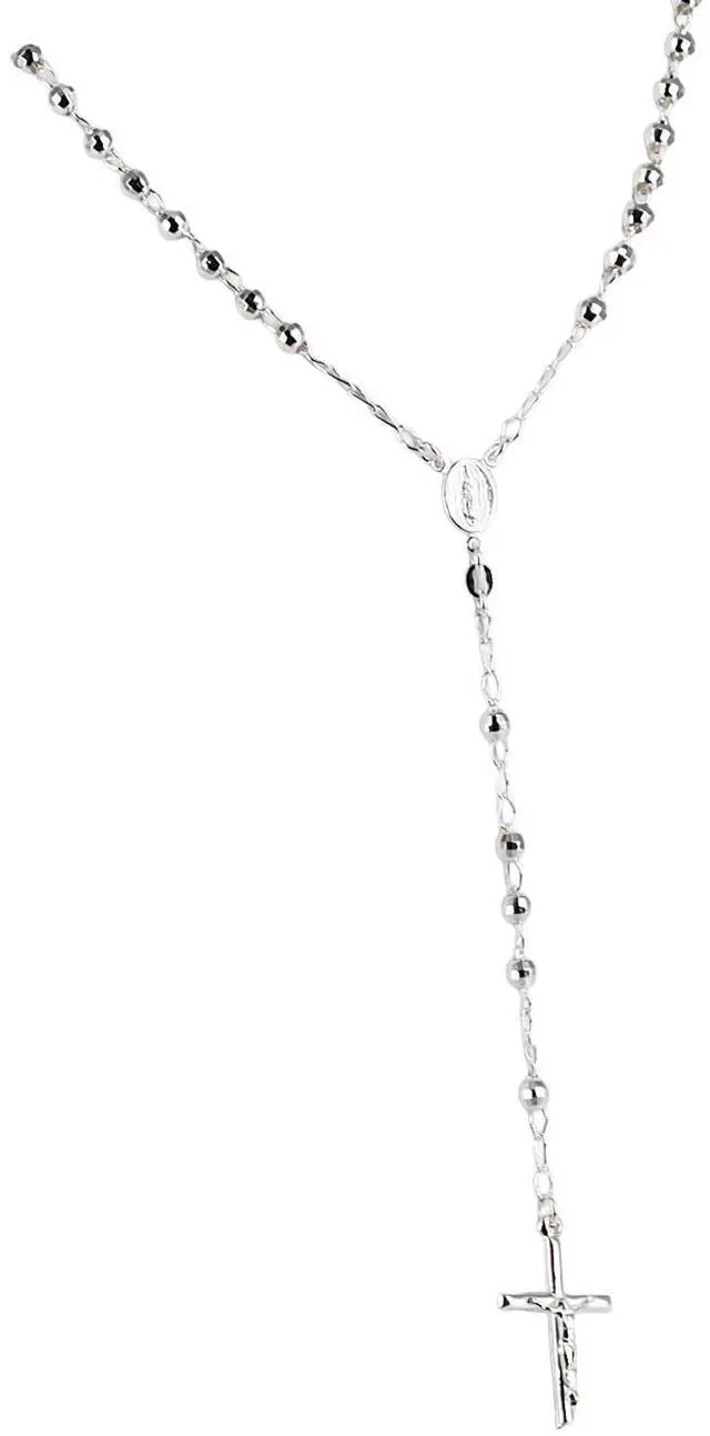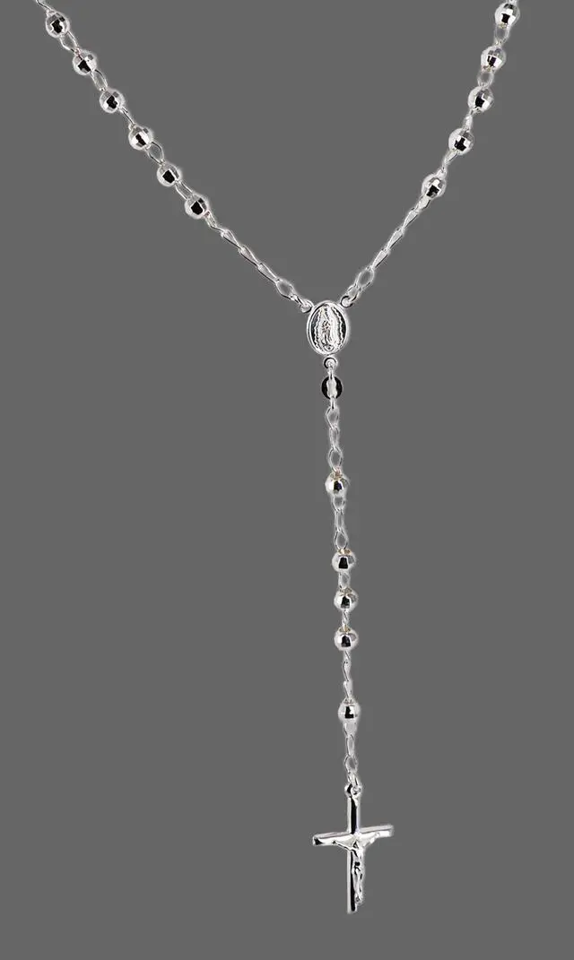 This meaningful necklace features sterling silver rosary beads that capture delicate beauty in an iconic religious design.