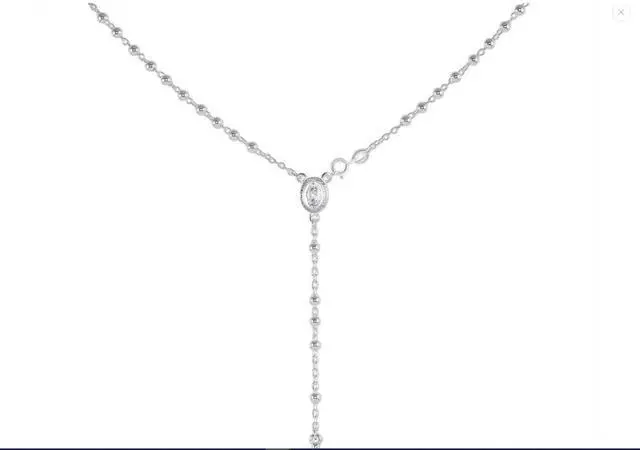 This meaningful necklace features sterling silver rosary beads that capture delicate beauty in an iconic religious design.