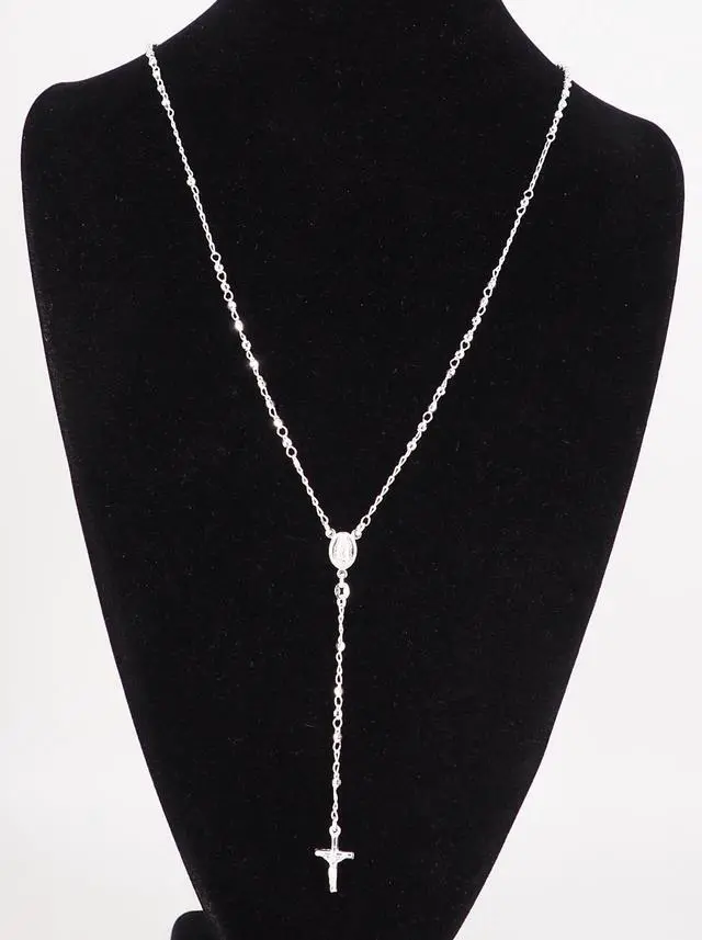 This meaningful necklace features sterling silver rosary beads that capture delicate beauty in an iconic religious design.