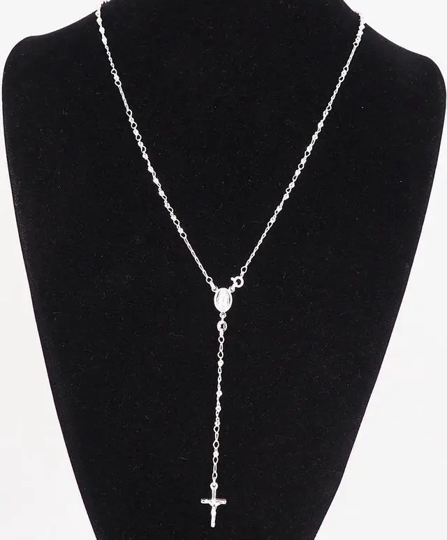 This meaningful necklace features sterling silver rosary beads that capture delicate beauty in an iconic religious design.