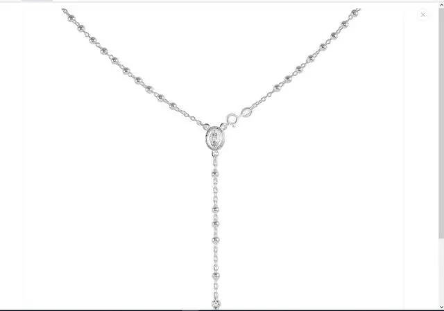 Solid 925 Sterling Silver 5mm Rosary 24 with Virgin Mary Guadalupe in the center of the necklace and Tube Cross Hanging & Jesus beautifully hanging from the chain