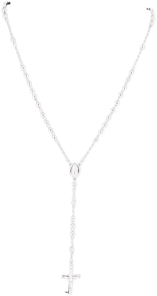 This meaningful necklace features sterling silver rosary beads that capture delicate beauty in an iconic religious design.