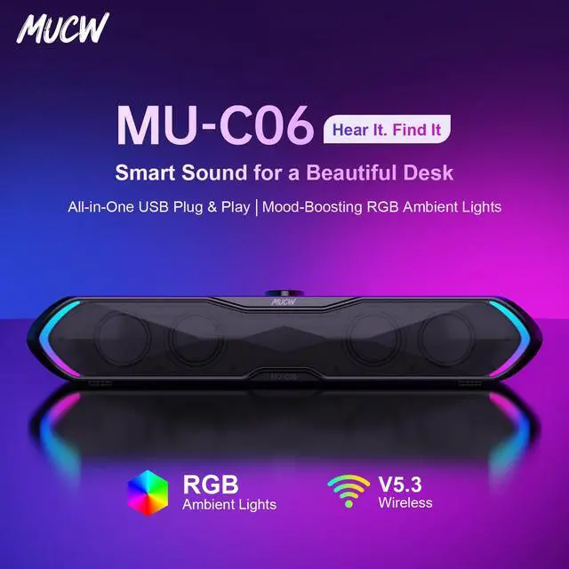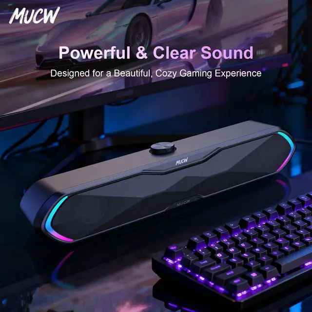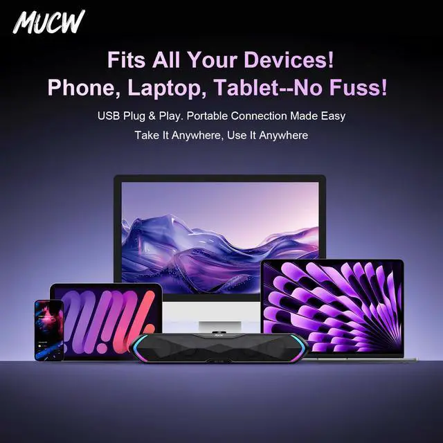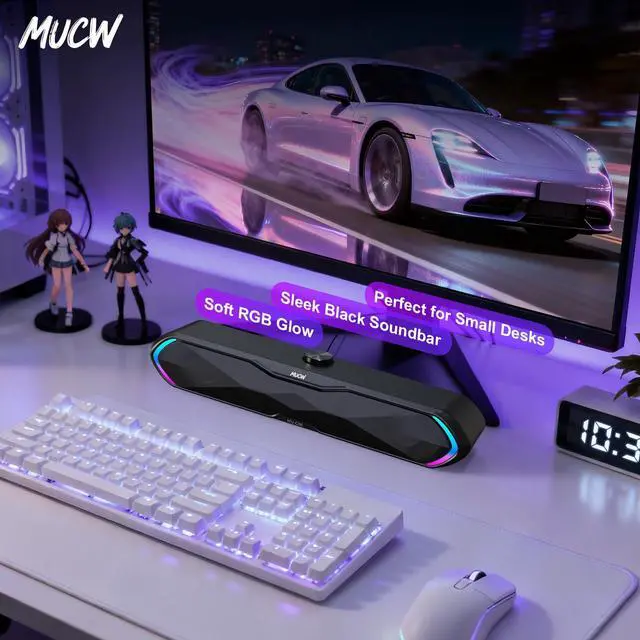 COMPACT DESIGN: Sleek 15-inch soundbar with desktop mount design fits perfectly under monitors, delivering powerful audio without sacrificing desk space