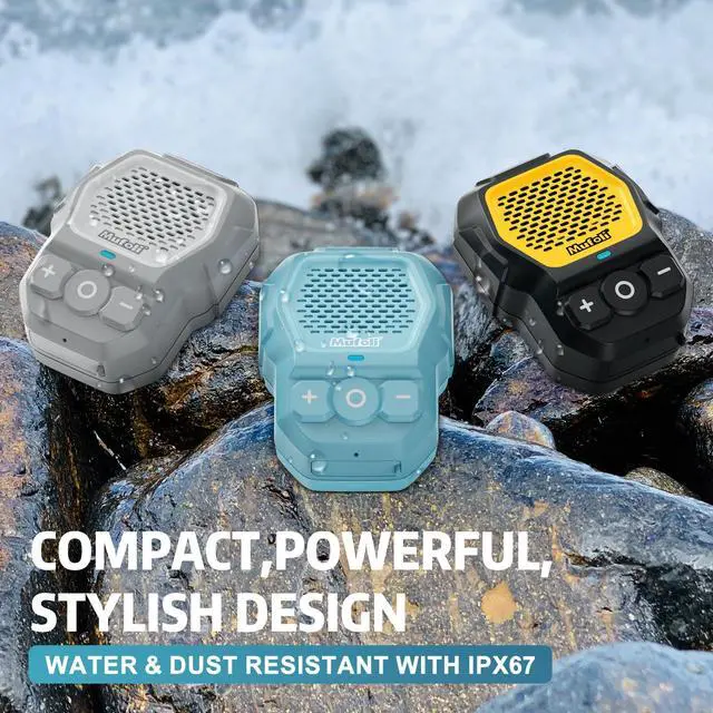 [IP67 WATER & DUST RESISTANT ] This portable bluetooth speaker features an IP67 rating for dust and water resistance, making it versatile for both work and outdoor activities.
