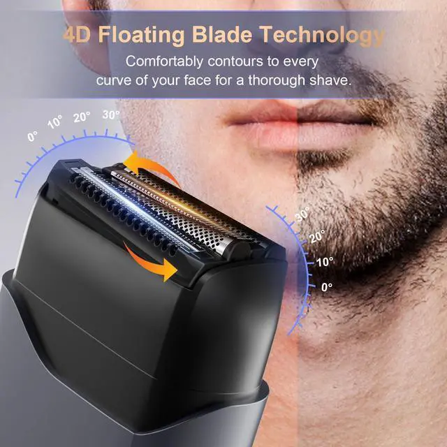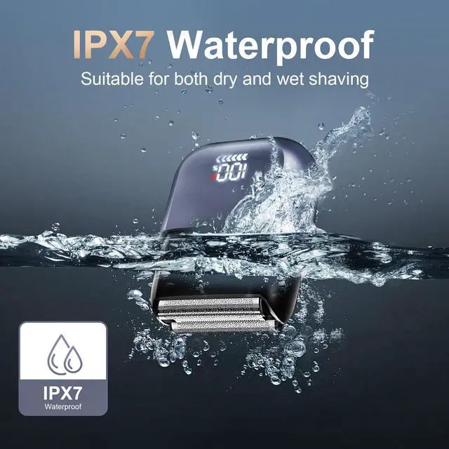 Versatile Wet & Dry Shaving Design: Engineered with a fully-sealed IPX7 waterproof body, this electric razor for men offers maximum flexibility. Enjoy a quick, comfortable dry shave or pair it with your favorite gel for a refreshing wet shave in the shower. The seamless design allows for easy, thorough rinsing under running water, making cleanup effortless and hygienic