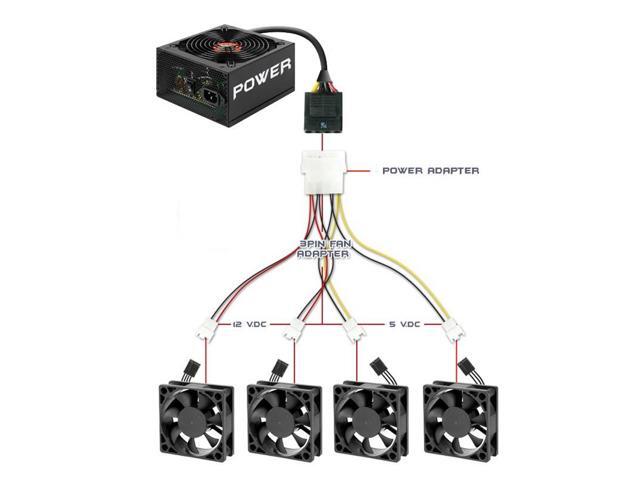 6 inch Molex 4pin LP4 to Case cooling Fan 3-pin 3 Multi-Fan Out Power Adapter Converter Cable w/ 2x5V/2x12V Speed Reduction