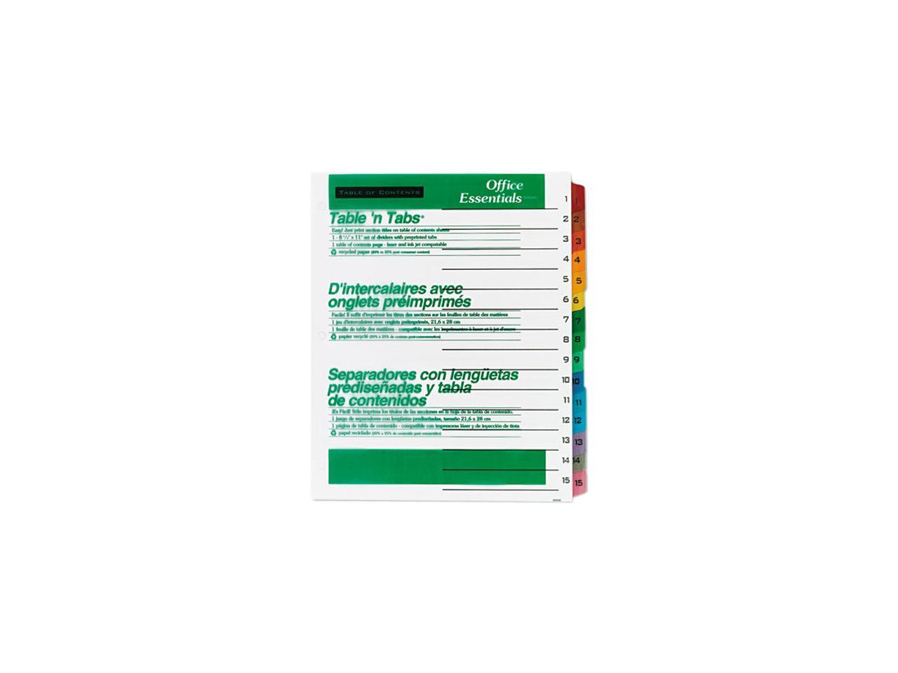Avery 11675 Office Essentials Table 'N Tabs Dividers, 15 Multicolor Tabs, 1-15, Letter, Set