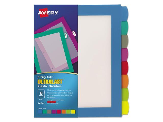 Avery Ultralast Big Tab Plastic Dividers, 8-Tab Set, Multicolor (24901)