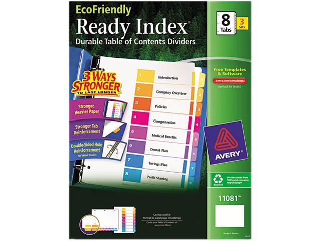 Avery 11081 Customizable Table of Contents EcoFriendly Dividers, Ready Index Printable Section Titles, Preprinted 1-8 Multicolor Tabs, 3 Sets (11081)
