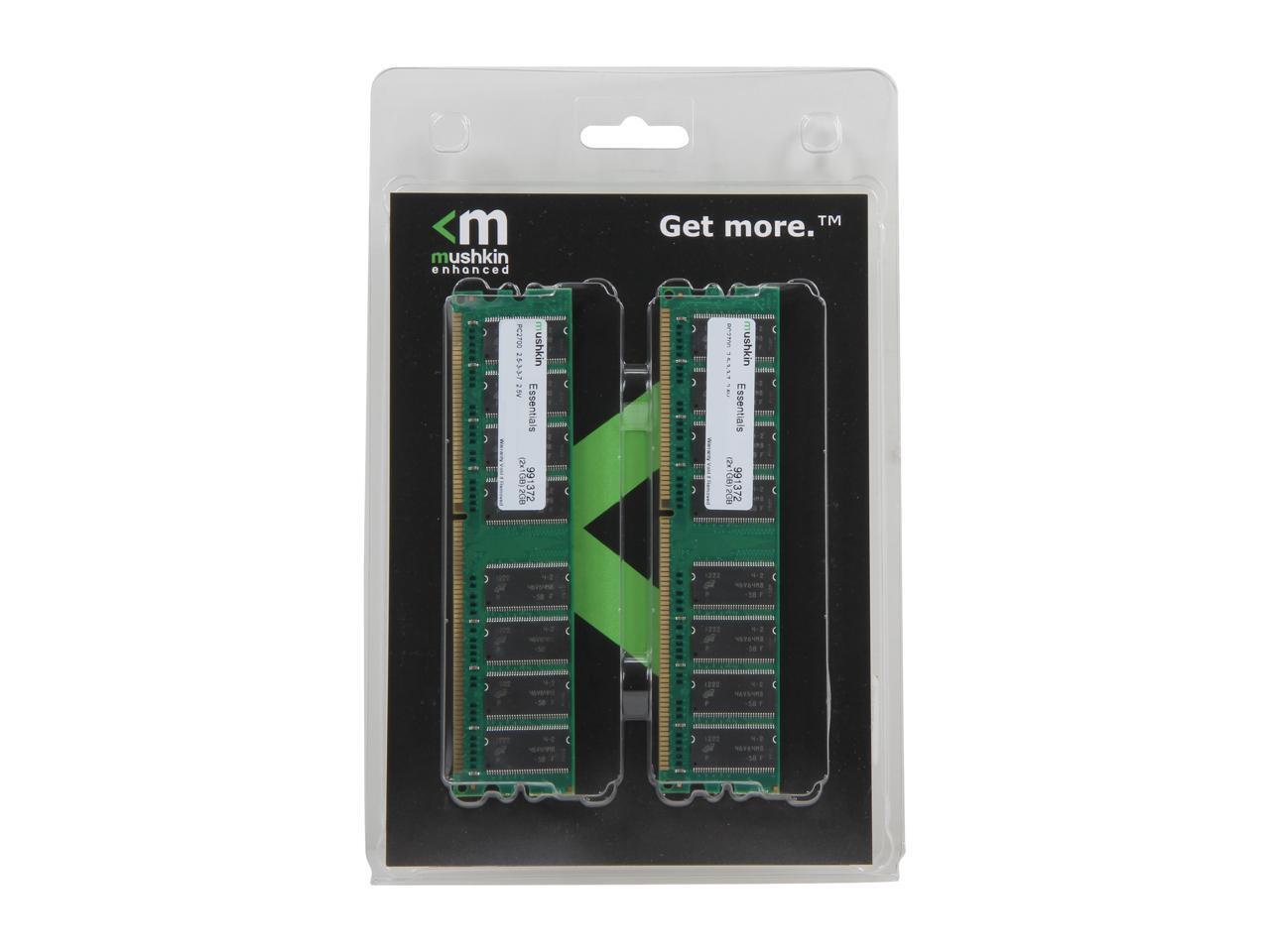 Mushkin Enhanced Green 2GB (2 x 1GB) 184-Pin DDR SDRAM DDR 333 (PC 2700) Dual Channel Kit System Memory Model 991372