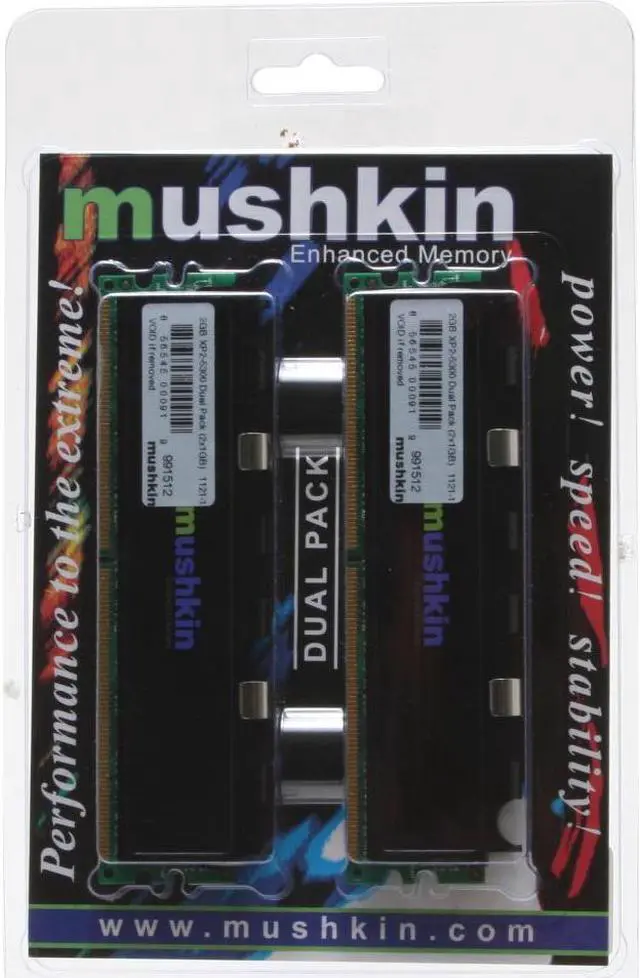 These eXtreme Performance 2 GB (2x1)XP2-5300 modules (DDR2-667) offer next generation enhanced memory throughput and stability for the most demanding operations. A product of Mushkin's exclusive EPIC selection process, the XP2-5300 is hand-tested to the highest quality and performance standards. These sticks can handle the highest resolutions and frame rates you care to throw at them