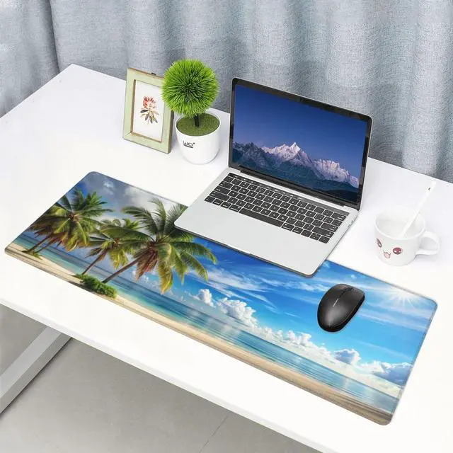 Extended Large Mouse Pad Size: Large desk mat's measure: 31.5" X 12". Stitched Edge, Non Slip Rubber Base. The desk pad is large enough to have a mouse, gaming keyboard, and other desk items.