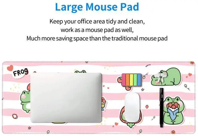 Extended Large Mouse Pad Size: Large desk mat's measure: 31.5" X 12". Stitched Edge, Non Slip Rubber Base. The desk pad is large enough to have a mouse, gaming keyboard, and other desk items.