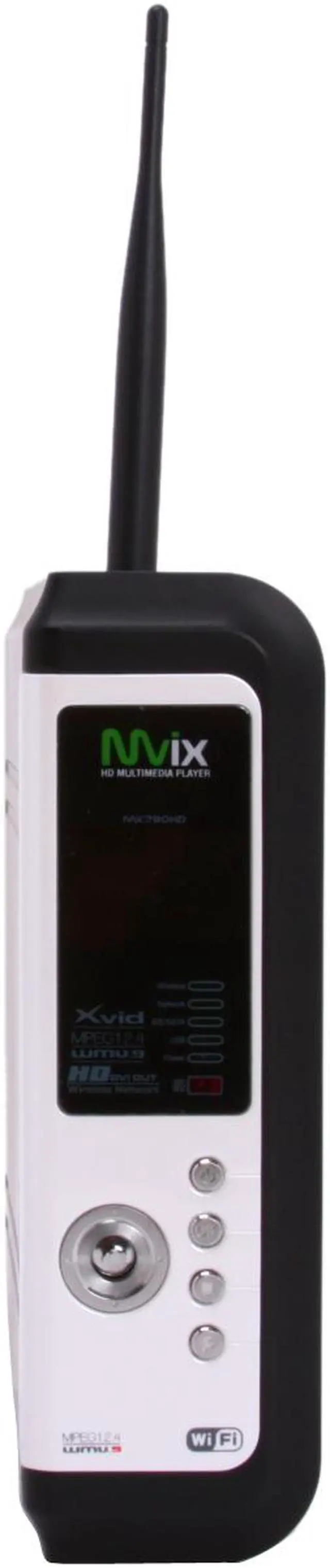 | Specifications | Processor: SEM8621L (By Sigma Designs) Memory: 64MB (RAM), 8MB (Flash) Video Support: DivX (3/4/5), DivX 6, AVI, Xvid, BivX, MPEG, MPG, VCD(DAT), DVD(VOB, IFO), ISO, WMV(WMV-9), ASF(WMV-9), TP, TS, TRP Audio Support: MP3, WMA, AAC, OGG, PCM, AC3, DTS decoding including down-mixing, DTS pass through Image Support: BMP, JPEG/JPG, PNG Subtitle Support Network Security: Wireless: Network security infrastructure (WEP/WPA) and MAC-address Filtering Network Protocol: Wireless - IEEE802.11b/g, 5dBi antenna (SMA type), Wire - 10/100Mbps Fast Ethernet (RJ45), TCP/IP (DHCP client mode, Manual IP mode) Infrared Receiver Remote Control |