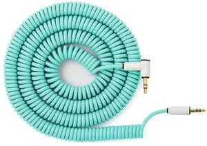 MyVolts Candycord Audio Cable, Straight mini Jack to Angled mini Jack, Curly 100cm to 200cm, Mint Green Colour, Perfect for Microfreak, Korg Volca, Pocket Operator, Headphones