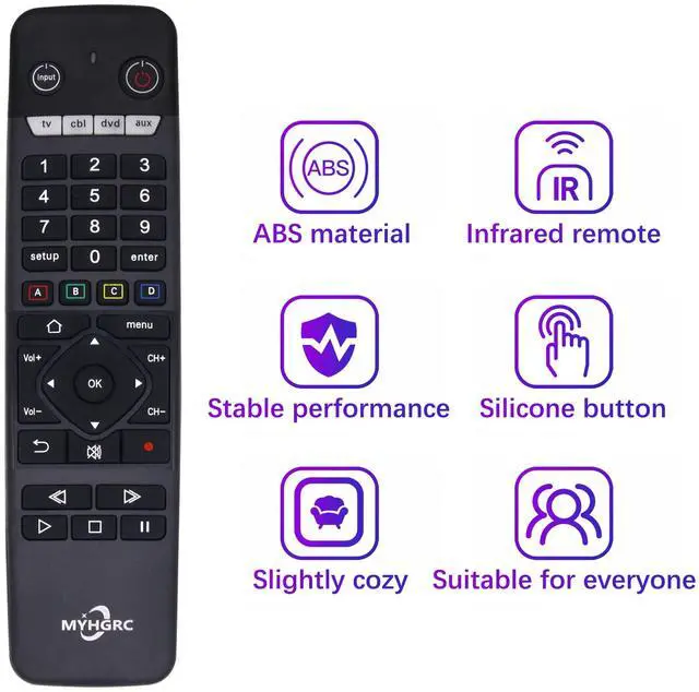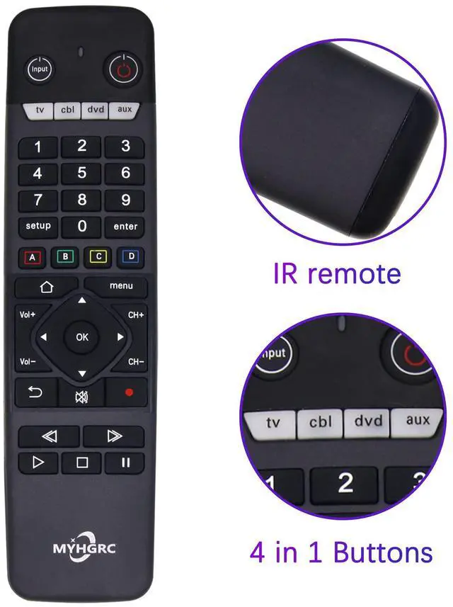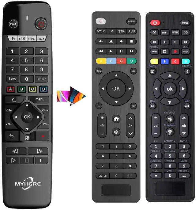 MYHGRC 4-in-1 Universal IR Learning Remote Universal TV Remote for LG,Samsung, TCL, Philips, Vizio, Sharp, Sony, Panasonic, Sanyo, Insignia, Toshiba, Roku, Media Center/Kodi, Nvidia Shield, Most Streamers & Other A/V Devices - TV/DVD/AUX/CBL 4 in 1 Universal Remote Easy Setup