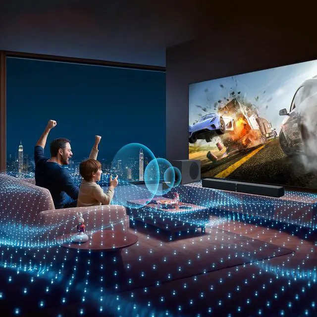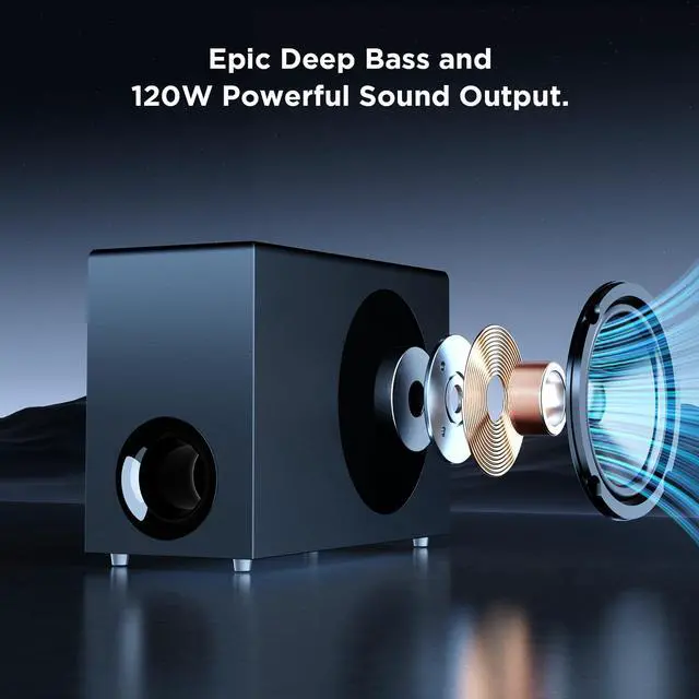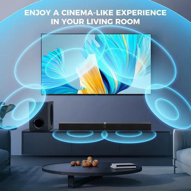 Our soundbar with subwoofer delivers powerful bass and crystal-clear treble, bringing movies, music, and games to life. Enjoy a true theater-like experience in the comfort of your home.