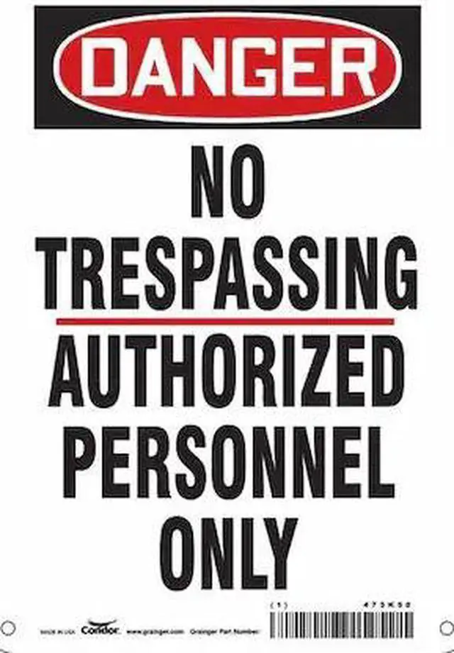 California Proposition 65: This product contains a chemical known to the State of California to cause birth defects or other reproductive harm. Safety Sign, Horizontal Rectangle, Number of Printed Sides 1, English, Sign Format Traditional OSHA, Sign Legend No Trespassing Authorized Personnel Only, Sign Legend Background Color White, Sign Legend Style Text