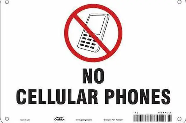 California Proposition 65: This product contains a chemical known to the State of California to cause birth defects or other reproductive harm. Safety Sign Cell Phone, Vertical Rectangle, Number of Printed Sides 1, English, Sign Legend No Cellular Phones, Sign Legend Background Color White, Sign Legend Style Symbol and Text