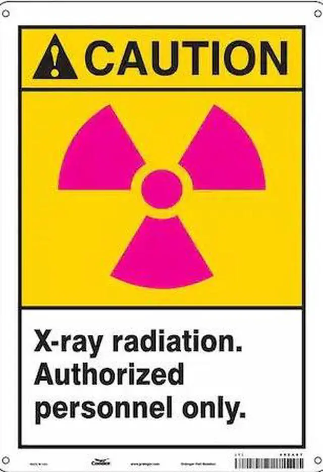 Radiation Sign, Vertical Rectangle, Number of Printed Sides 1, English, Sign Format ANSI/OSHA Format, Sign Legend X-Ray Radiation. Authorized Personnel Only., Sign Legend Background Color White, Yellow, Sign Legend Style Symbol and Text