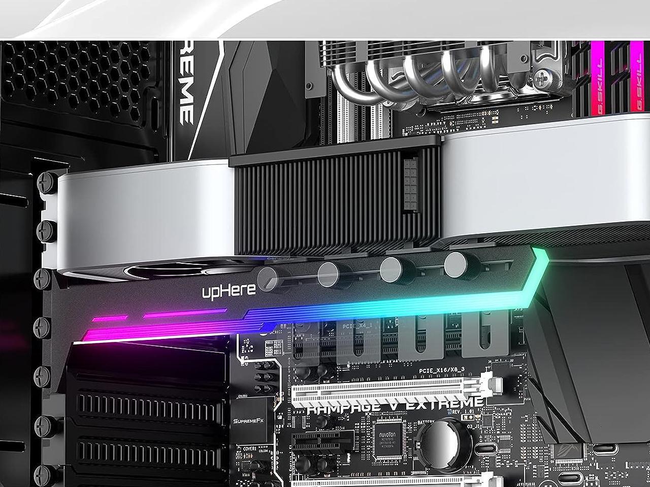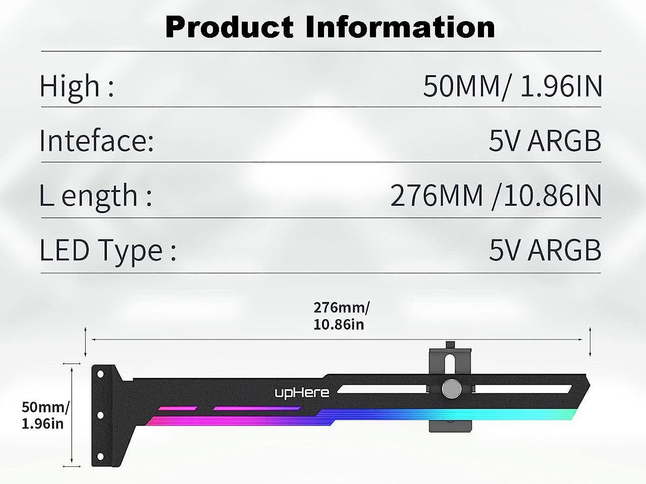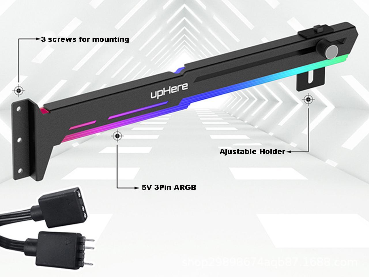 GPU Holder 5V 3PIN Addressable RGB Graphics Card GPU Brace Support Video Card Sag Holster Bracket, Built-in ARGB Strip, Length and Height Adjustable, Mounting by 3 PCI Slot