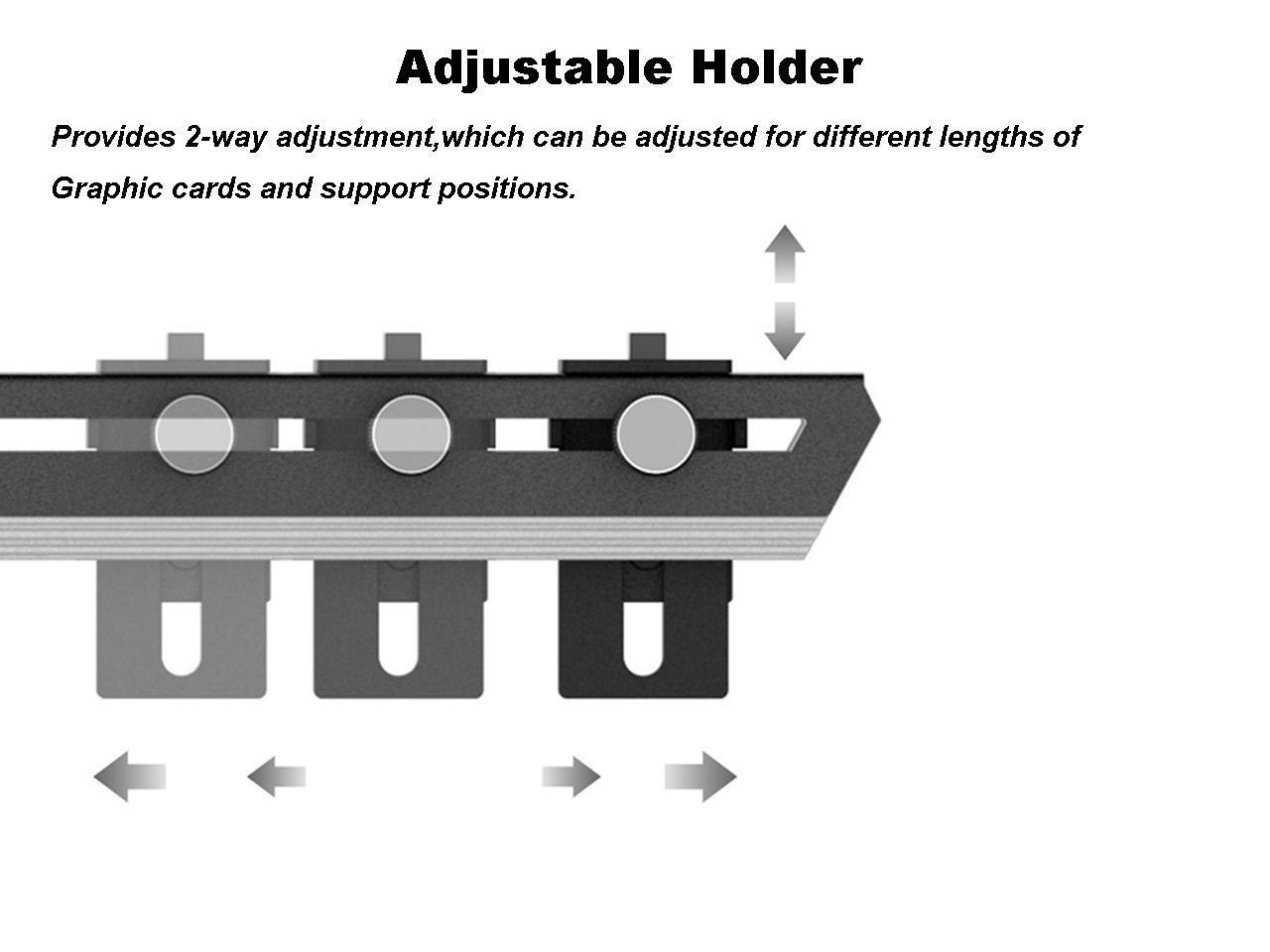 - Provides 2-way adjustment,which can be adjusted for different lengths of Graphic cards and support positions.