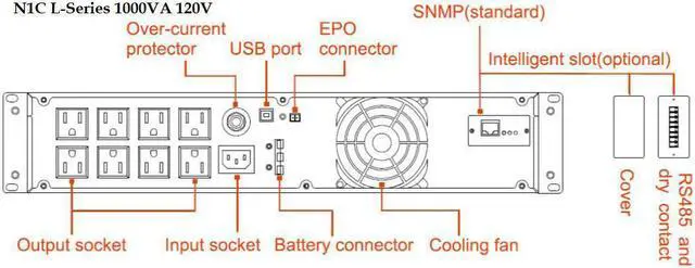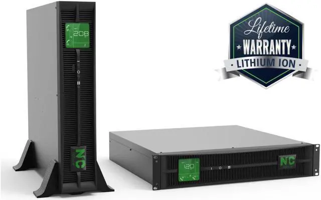 The L1000 is an Online Double Conversion UPS that protects against all 9 power problems and provides more backup runtime and longer overall life when compared to comparable lead acid battery backup systems. Get 11 minutes of backup runtime at 100% load (900W), or 24 minutes at 50% load, in a slim, 2U tall unit that's rack or tower mountable. Never change a UPS battery again! N1C's lithium-ion battery pack has a 15-year life expectancy, meaning your days of changing out UPS batteries every 3-4 years are over! Systems work in temperatures from 32º-140ºF, potentially giving you savings from reduced room cooling needs! Rail kits included, along with SNMP card and free 1000-node monitoring software.