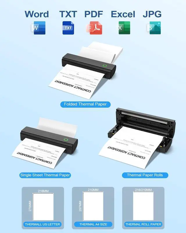 Versatile Paper Support: our N80 travel printer supports two paper sizes (US Letter/A4) and three types (roll/folded/single sheet) thermal paper, meeting to diverse needs like note-taking, exams, documents and DIY projects