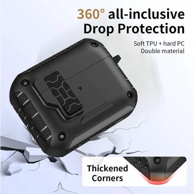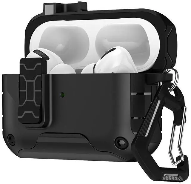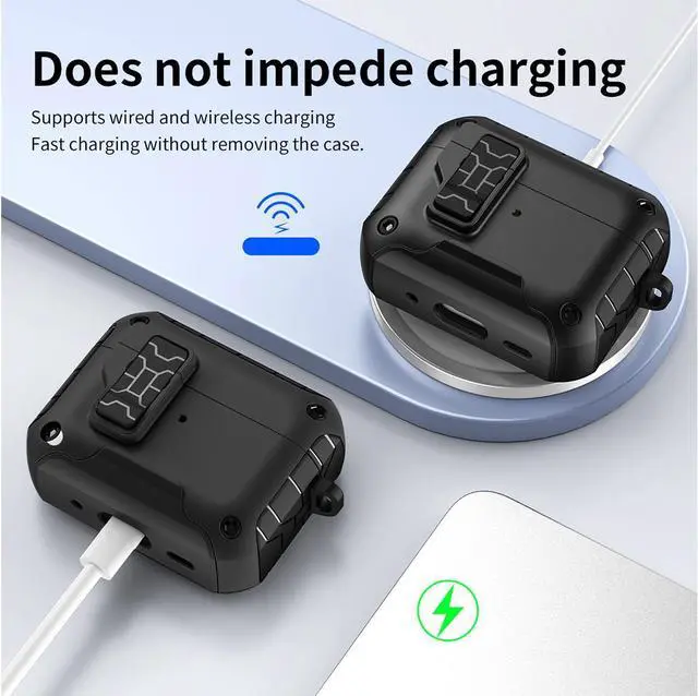 LIKE POLES REPEL: Magnets are also incorporated within the lid. Press the bottom button on the latch and your lid will spring open (as a result of same magnetic polarity). Such cool and useful technology that is convenient (and very satisfying to press). When you close the lid, you'll hear and feel the latch "click" secure. Enjoy peace of mind, knowing your Airpods Pro 3 are secure shut.