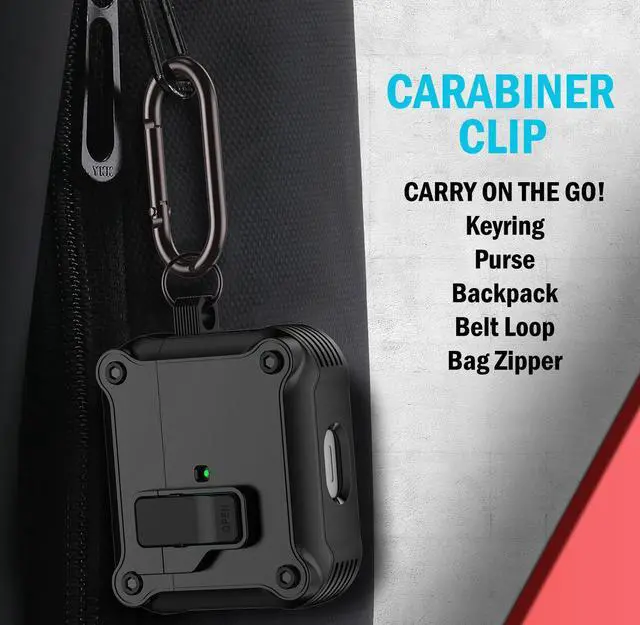 CARABINER CLIP: Attach the included clip to the side of the case. The carabiner is a versatile clip because you can attach to most anything: belt loop, backpack, strap, purse, keychain, etc.