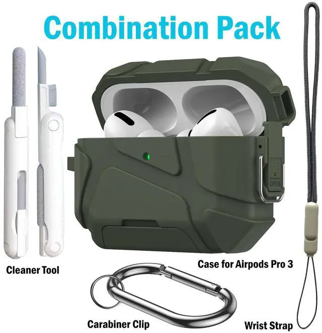 • VALUE BUNDLE FOR AIRPODS PRO 3: You Get 1 Rugged Case + 1 Lanyard Strap + 1 Carabiner Clip + 1 Cleaning Kit + 1 Tool. Unique Color Options = Easy to Identify and Locate