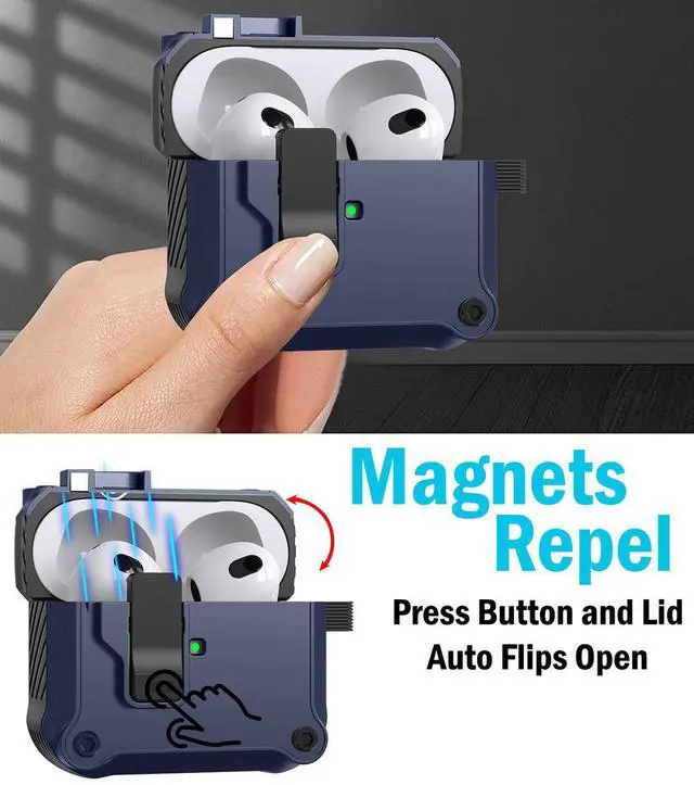SECURE MAGNETIC LID: When you close the lid, you'll hear and feel the latch "click" secure. Enjoy peace of mind, knowing your Airpods Pro 3 are secure shut. Press the bottom button on the latch and your lid will spring open (as a result of same magnetic polarity). Such cool and useful technology that is convenient (and very satisfying to press).